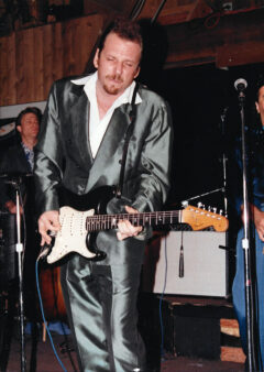 I pulled into the Winner’s Circle parking lot around 8:30 a.m. on one of those bright, sunny, glaring mornings, my head and eyes killing me from the night before. Ronnie was waiting for me in the parking lot, wearing the same green satin suit he had on the previous night, with his guitar in a gig bag slung over his shoulder. I just wanted to go home and crawl back into bed, but Ronnie insisted that I come into the Winner Circle’s bar with him and have a drink. I couldn’t dissuade him from this wonderful idea, so I parked my car and into the bar we went. Ronnie gave the bartendress a ten-dollar bill and asked her to get him a pack of cigarettes out of the machine that was only ten feet away from where we were sitting, and I remember thinking it was like we were in a scene from a Tom Waits song. Ronnie ordered vodka and orange juice, or something like that, and when I ordered a plain grapefruit juice, he turns to face me and asks, “Are you a bluesman?” I said that’s got nothing to do with it, and Ronnie said, “You’re right!”